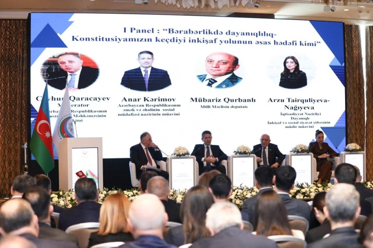 “Bərabərlikdə dayanıqlılıq-konstitusiyamızın keçdiyi inkişaf yolunun əsas hədəfi kimi” mövzusuna həsr olunan ilk panel müzakirəsi Azərbaycan Respublikasının Konstitusiya Məhkəməsinin hakimi Ceyhun Qaracayevin moderatorluğu ilə keçirilib.