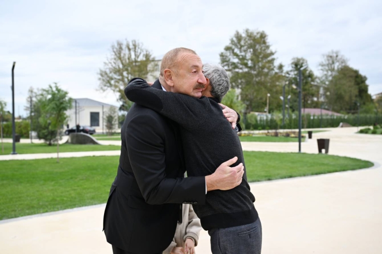 Sonra Prezident İlham Əliyev Gəncə Memorial Kompleksində Ermənistanın raket hücumu zamanı hər iki valideynini itirən Nilay Əliyeva və onun babası Zahid Babazadə ilə görüşdü.