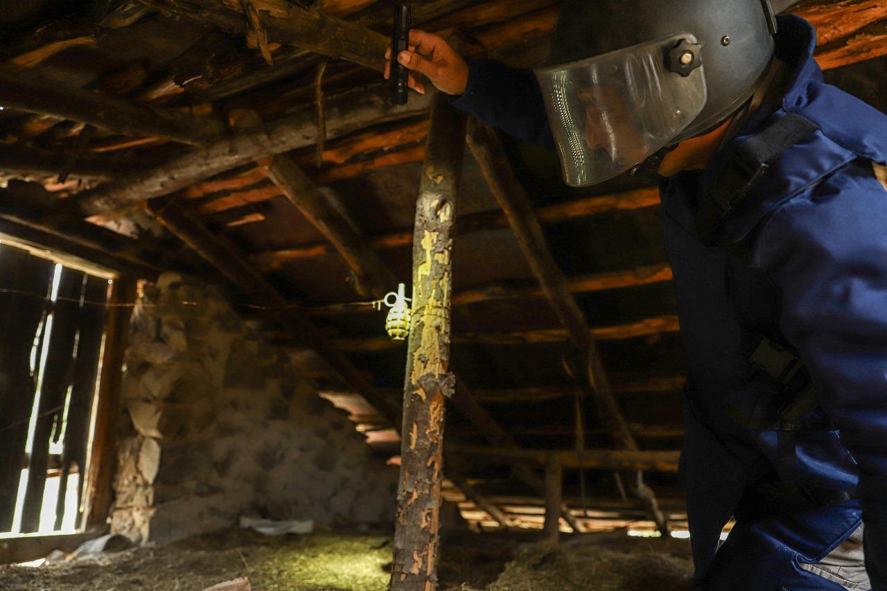Belə ki, evin damında sütuna və damın giriş qapısına tələ məftili vasitəsilə quraşdırılmış döyüş vəziyyətinə gətirilən 2 ədəd F-1 əl qumbaraları aşkarlanıb.
