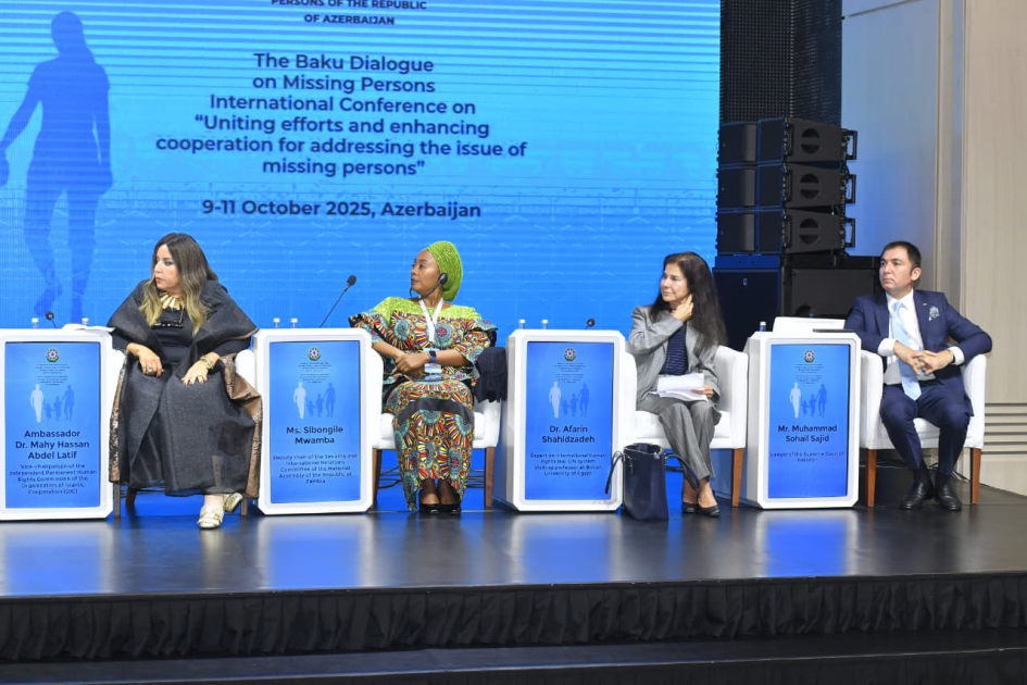 Meksikadan olan insan hüquqları üzrə ekspert Kristofer Ballinas Valdesin moderatorluğu ilə keçirilən sessiyada Türkiyənin ailə və sosial xidmətlər nazirinin müavini Zəfər Tarıkdaroğlu, Ukrayna Ali Radasının insan hüquqları üzrə komissarı (Ombudsman) Dmitro Lubinets, Macarıstan Konstitusiya Məhkəməsinin hakimi Akos Kozma, Franko-Britaniya Fondunun səfiri Ceffri Kardoso, İslam Əməkdaşlıq Təşkilatının Müstəqil Daimi İnsan Haqları Komissiyası Katibliyinin sədr müavini, səfir xanım Mahi Həsən Əbdül-Lətif, Zambiya Milli Assambleyasının Təhlükəsizlik və Xarici Əlaqələr Komitəsinin sədr müavini xanım Sibongile Muamba, Beynəlxalq insan hüquqları hüququ üzrə ekspert xanım Afərin Şahidzadə, Pakistan Ali Məhkəməsinin vəkili Məhəmməd Sohail Səcid və digərləri çıxış ediblər. Sessiyada çıxış edən ekspertlər və rəsmilər vurğulayıblar ki, itkin düşmüş şəxslər problemi yalnız regional deyil, bütün insanlığın ortaq vicdanını narahat edən qlobal məsələdir. Bu problemin həlli dövlətlərin humanitar öhdəliyidir və beynəlxalq əməkdaşlıq, məlumat mübadiləsi və həmrəylik burada olduqca vacibdir.