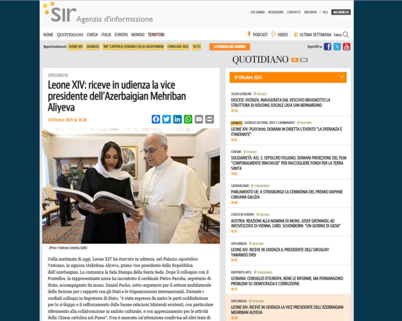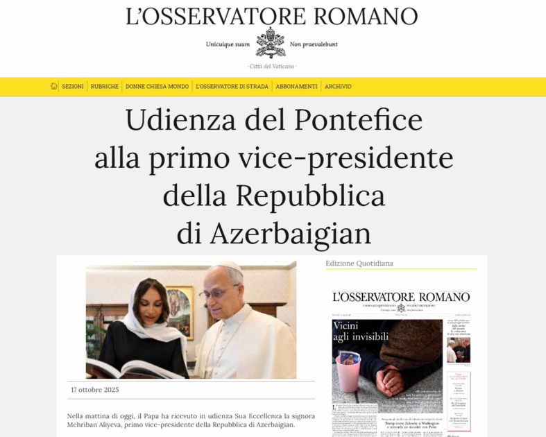 “Vatican News” portalının, Vatikanın yeganə rəsmi mətbuat orqanı olan “L’Osservatore Romano” qəzetinin, “ACI Stampa” və “Agenzia S.I.R” katolik xəbər agentliklərinin, eləcə də İtaliyanın katolik icmasına məxsus “Faro di Roma” qəzetinin yaydığı materiallarda Müqəddəs Taxt-Tacla Azərbaycanın ikitərəfli əlaqələrinin son illərdə xeyli inkişaf etdiyi vurğulanıb.