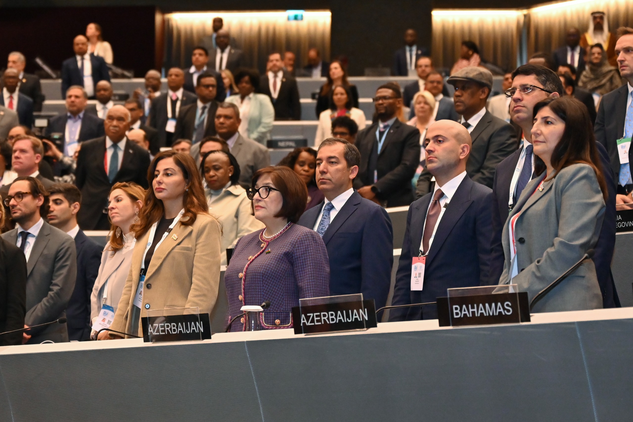 Çıxışında bu gün dünyada münaqişələrin və təbii fəlakətlərin sayının artmaqda davam etdiyini söyləyən spiker Sahibə Qafarova bunun özü ilə yeni humanitar çağırışlar – zorakılıq, köçkünlük, böhranlar və aclıq gətirdiyini bildirib. Birləşmiş Millətlər Təşkilatının Baş katibinin bu yaxınlarda qlobal humanitar fəaliyyətin iflasa uğramaq ərəfəsində olması ilə bağlı xəbərdarlıq etdiyini xatırladan Milli Məclisin sədrinin sözlərinə görə, bu, vəziyyətin nə qədər ciddi olduğunu və birgə tədbirlərə nə qədər ehtiyac duyulduğunu açıq şəkildə göstərir.