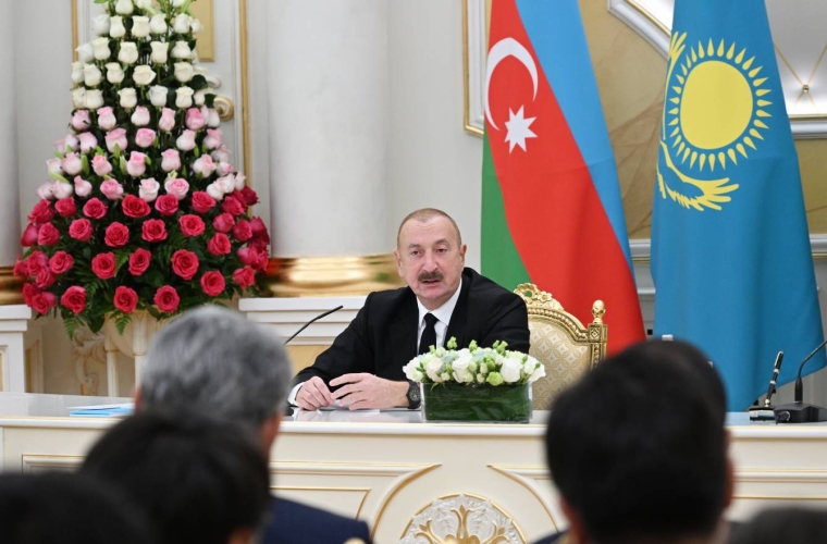 Azərbaycan və Qazaxıstan prezidentləri mətbuata bəyanatlarla çıxış ediblər