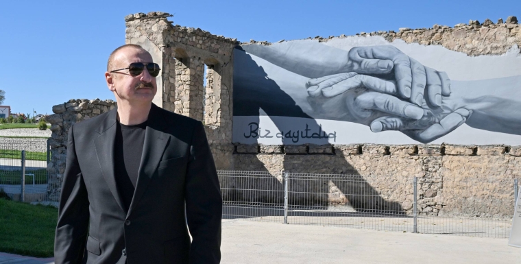 İlham Əliyev Cəbrayıl rayonunun Horovlu kəndinin sakinlərinə mənzillərin açarlarını təqdim edib