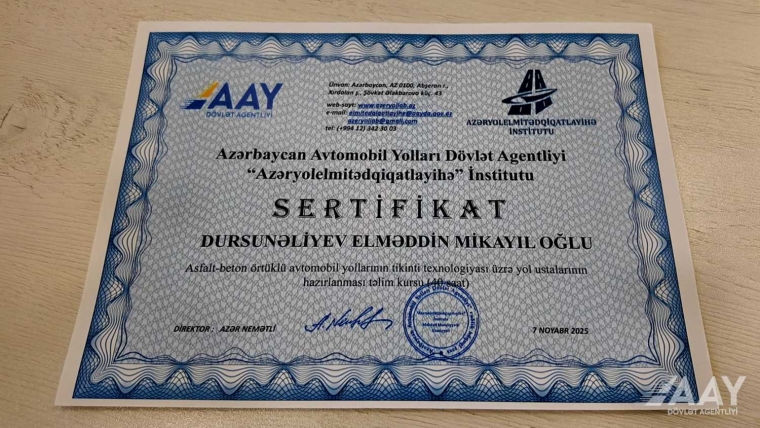 Azərbaycan Avtomobil Yolları Dövlət Agentliyinin “Azəryolelmitədqiqatlayihə” İnstitutu tərəfindən avtomobil yollarının yüksək keyfiyyətlə tikintisi və uzunömürlü istismarı məqsədilə təşkil edilən ixtisasartırma kursları uğurla yekunlaşıb.