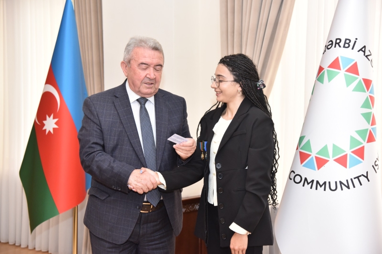 Sonra L.Vəliyevaya Qərbi Azərbaycan İcmasının Fəxri Fərmanı, üzvlük vəsiqəsi, döş nişanı və İcmanın pul mükafatı təqdim olunub.