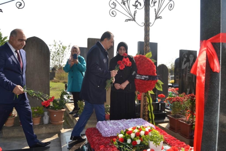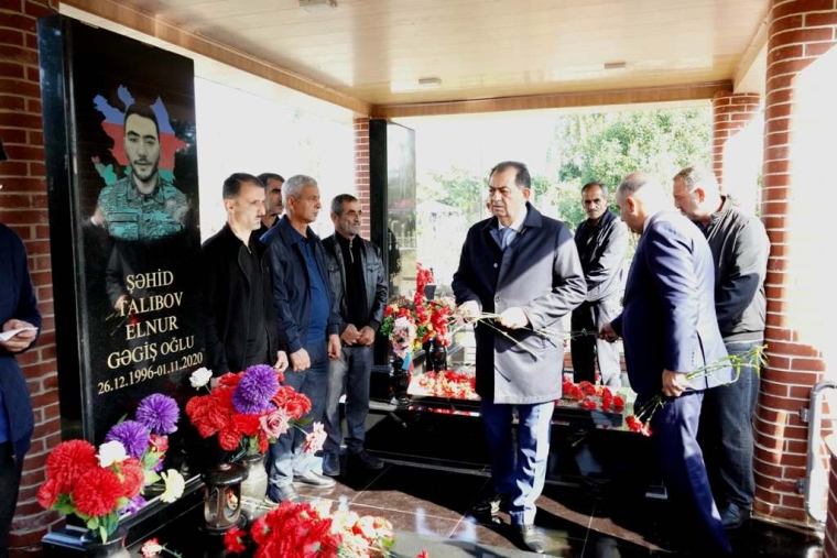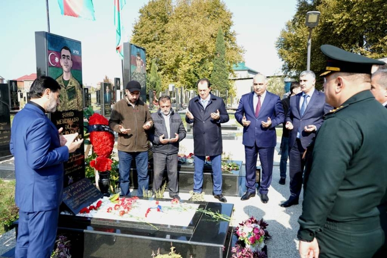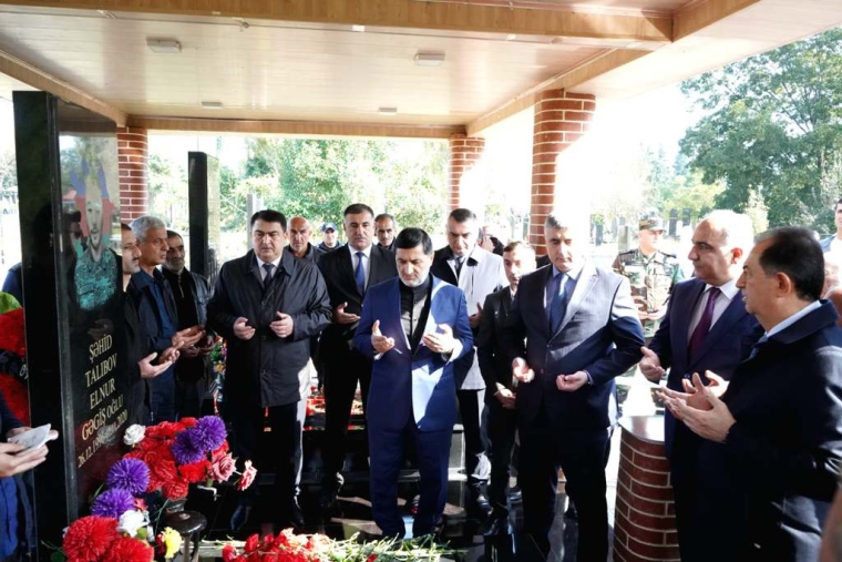Taleh Qaraşov Vətən müharibəsi şəhidləri Kənan Axundzadə, Elnur Talıbov və Əli Mehdizadənin anım günündə məzarını ziyarət edib